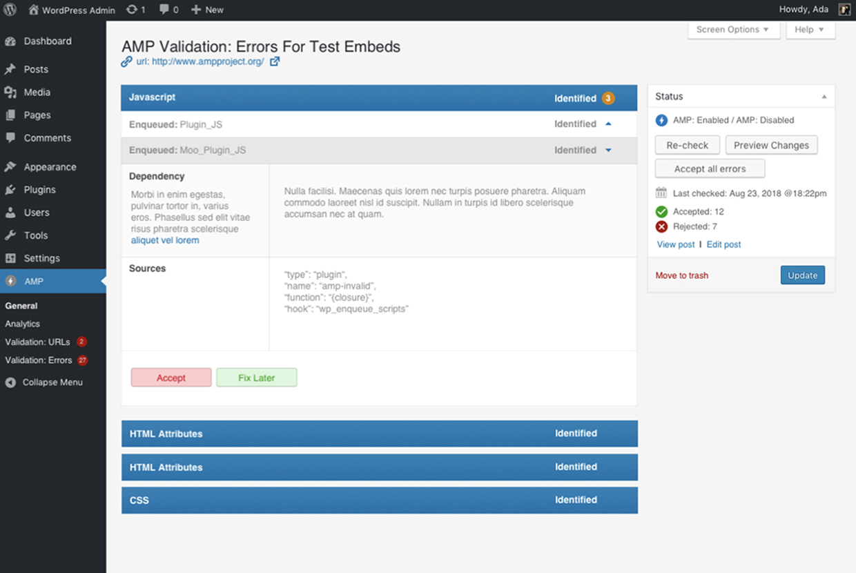 Current AMP validation pages are not intuitive to use and needs visual improvement that will help AMP developers ease work flow and save time on navigating through the product.