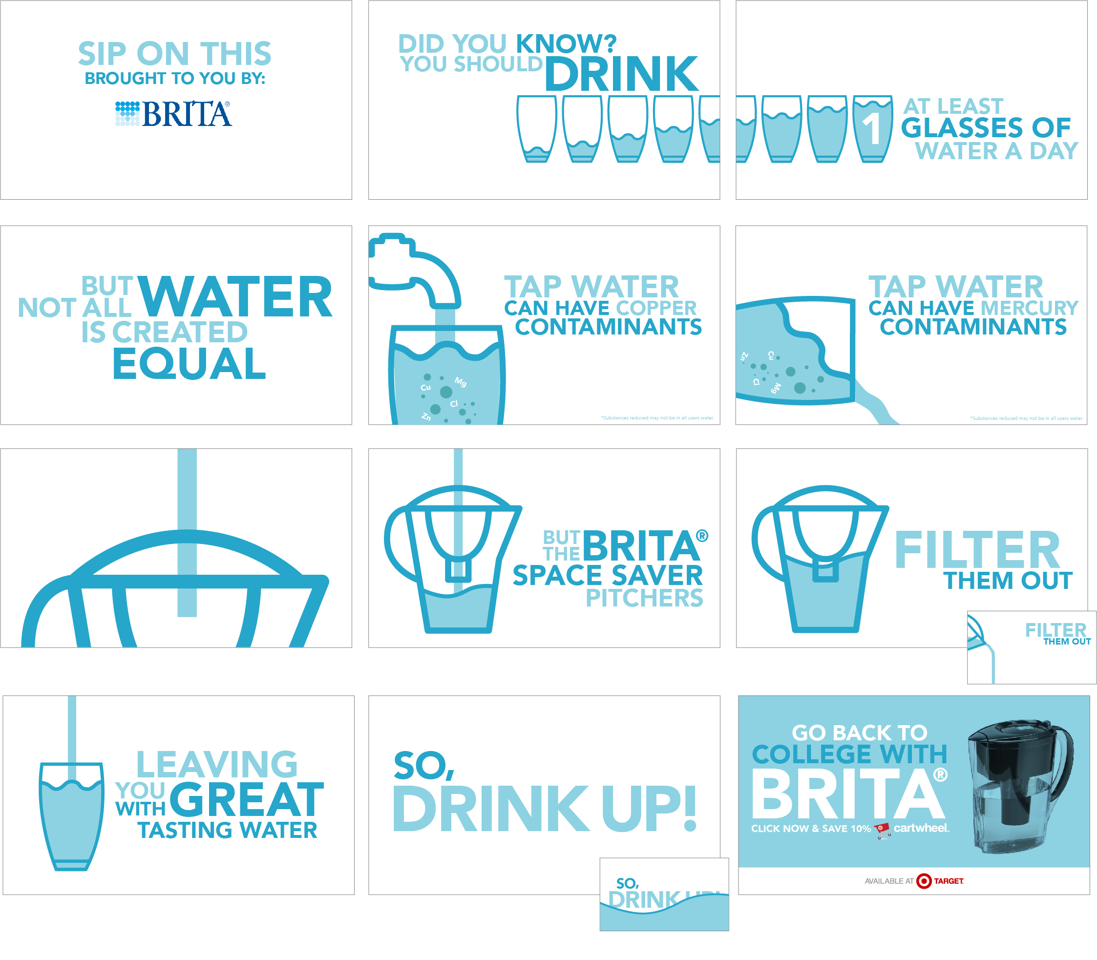 “Healthy and clean” is one of the team spirits and brand images of Brita. From this project, I also learned how to use simple color and elements to make it “healthy and clean”, “modern” instead of “traditional”. I was given some free filters to use I definatly enjoyed great tasting and clean water that made me feel healthy after drinking it.